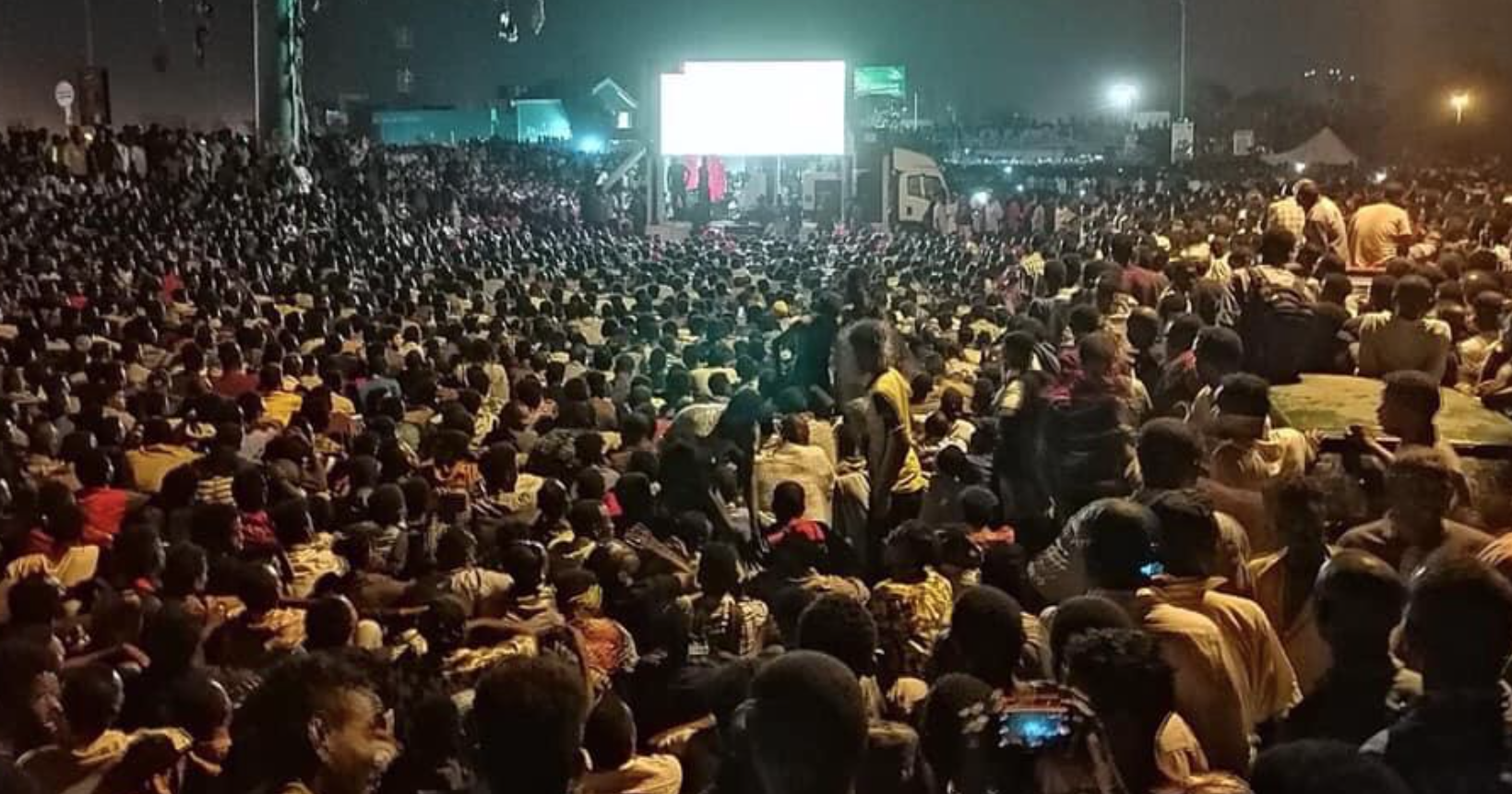 Protesters at Sudan's mass anti-regime sit-in, watch the footie on screens they set up today. pic.twitter.com/W2zJRGzb8Y